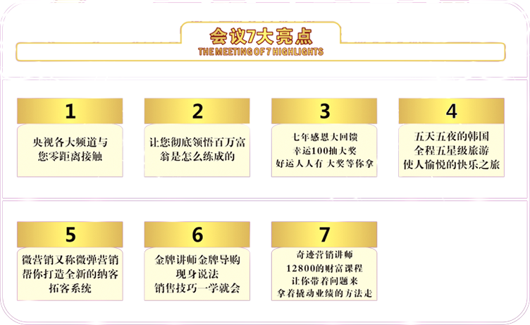 只要來參會(huì)即可獲得價(jià)值12800的自動(dòng)提款機(jī)的課程,帶著問題來,拿著撬動(dòng)業(yè)績的方案走!今天你不用投資120萬請(qǐng)葉茂中做策劃案,也不用60萬,也不用30萬,更不用10萬,只需要來參會(huì),就可和趙海燕老師共同學(xué)習(xí)現(xiàn)場量身定做你的品牌的專屬業(yè)績?cè)鲩L方案!把策劃結(jié)果拿回家!本次課程只為有夢(mèng)想的企業(yè)家開放,只為夢(mèng)想前進(jìn)!撬動(dòng)業(yè)績的扛鼎模式,錯(cuò)過了就是錯(cuò)過成為下一個(gè)百萬富翁的機(jī)會(huì),你還在猶豫什么?